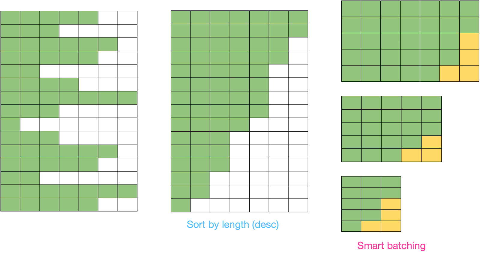 - We first derive the maximum sequence length for a given batch of sequences and do the rest of the processing with the derived sequence length for the corresponding batch. This approach is depicted in Figure 2.
